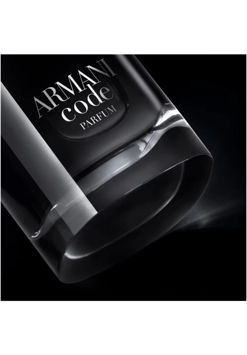 Le nouveau flacon d’ARMANI CODE PARFUM exprime une vision moderne du luxe. D’un noir intense, à la forme carrée et arrondie, il possède une base en verre épurée. Le capot magnétique, portant le monogramme de Giorgio Armani, ferme le flacon en un seul geste. Sous celui-ci, une plaque argentée accroche la lumière et oppose un contraste sophistiqué.