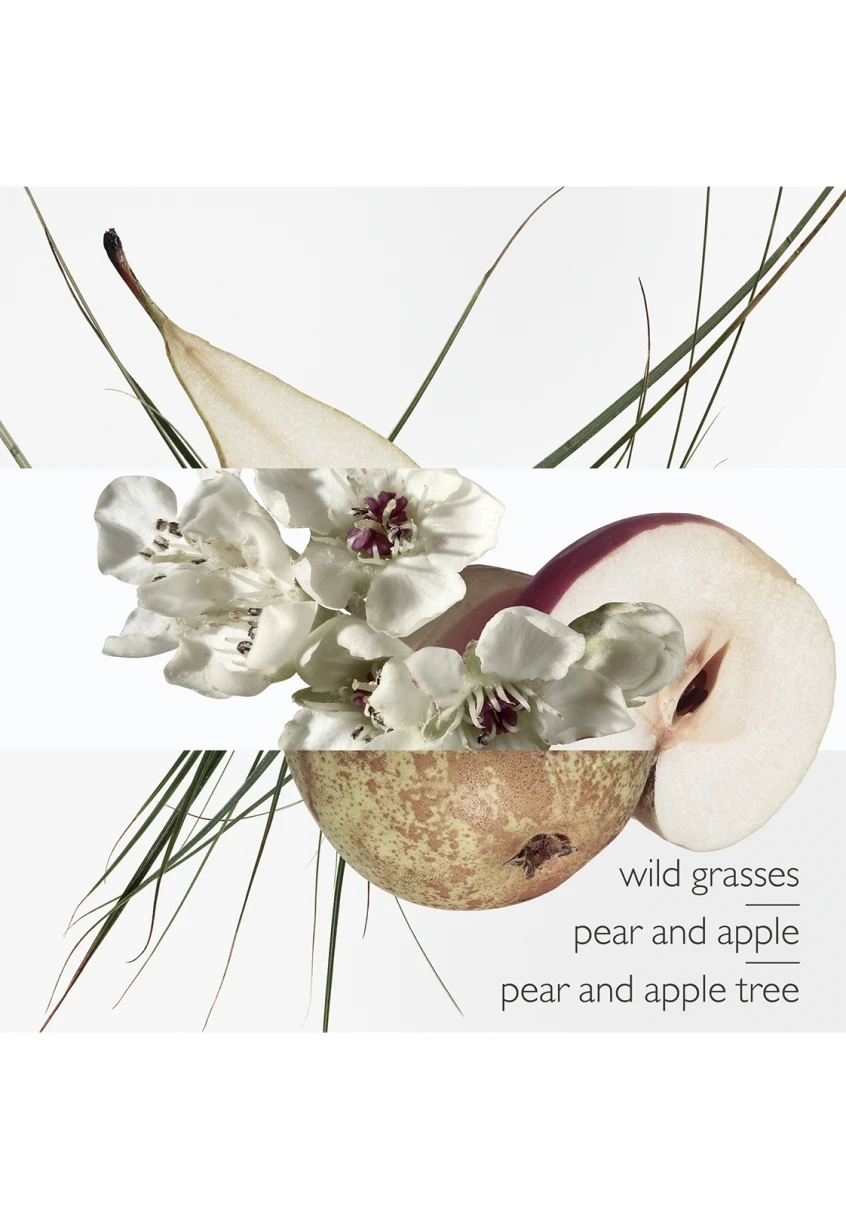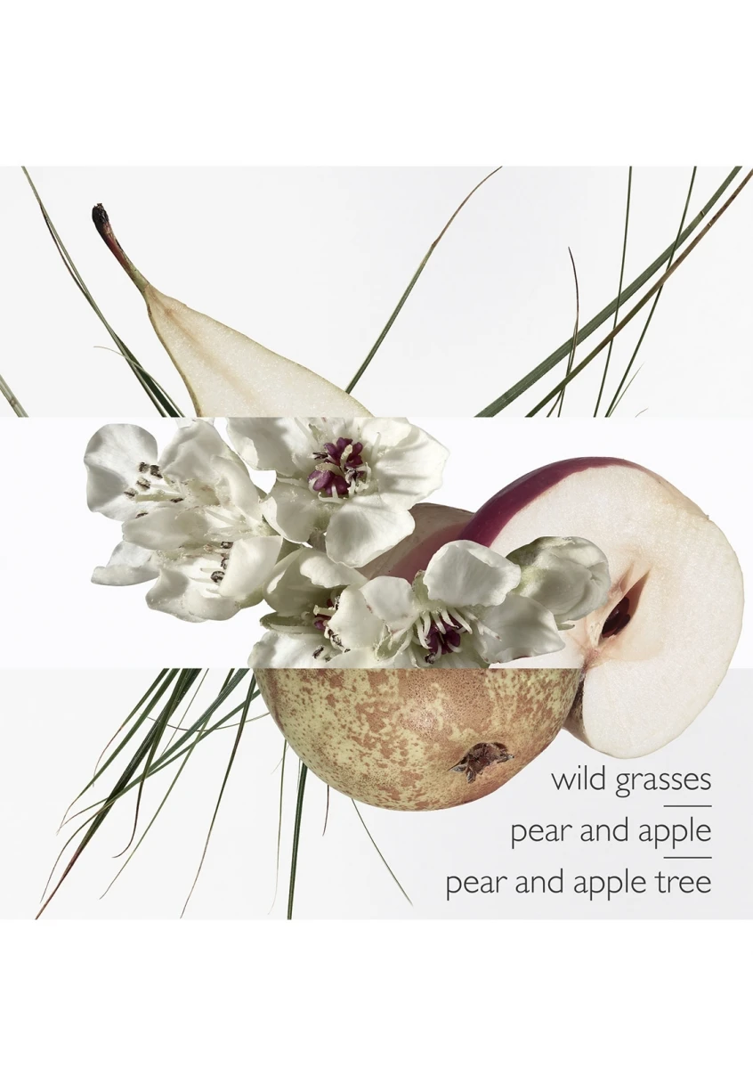 Un pommier, un poirier, un magnolia dans l’air de Paris, des herbes folles créent ce parfum de lumière et de plaisir, croquant et rieur.