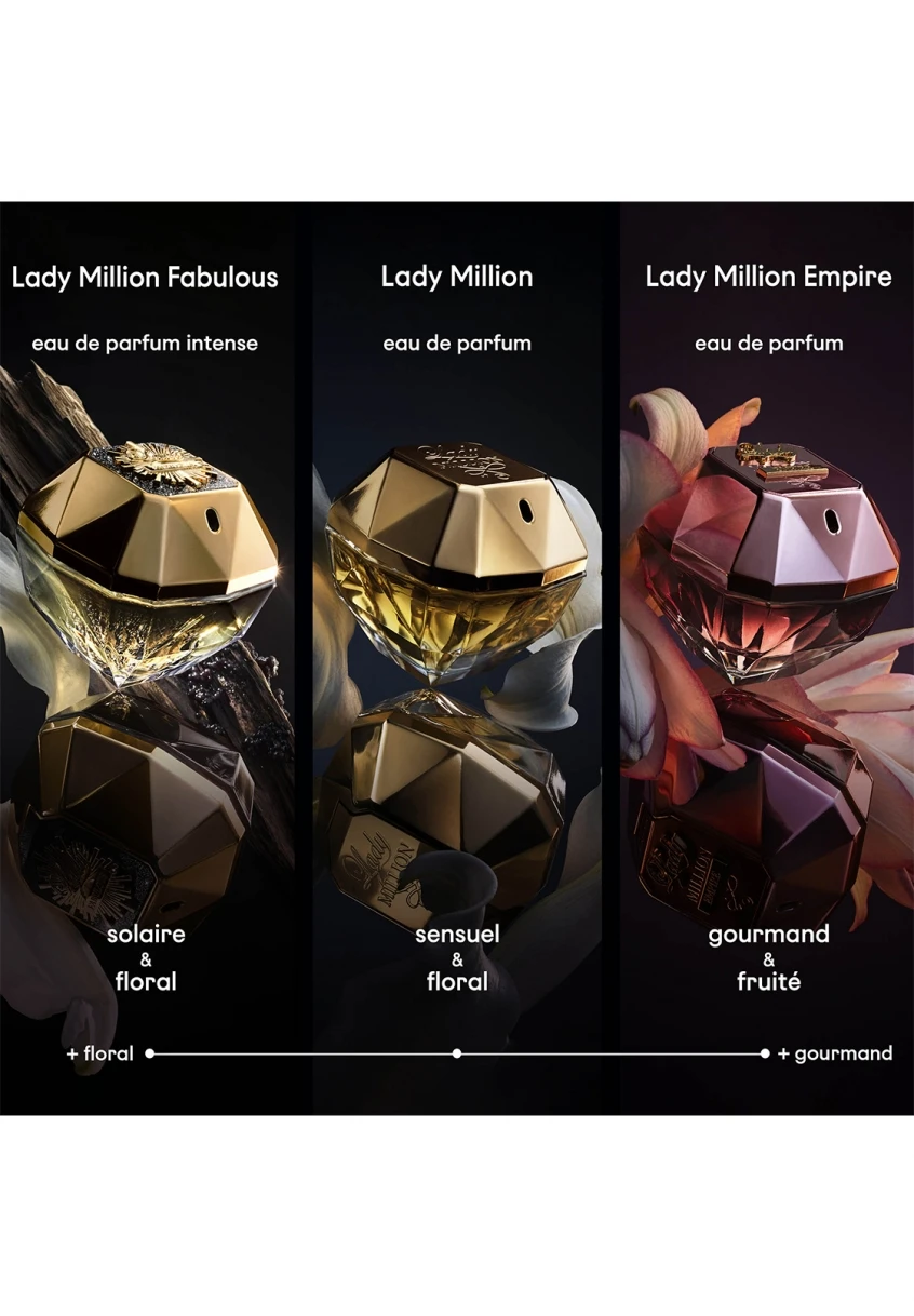 Lady Million Fabulous, le nouvel ORIENTAL floral de Paco Rabanne. Une fragrance addictive capturant la lumiere des fleurs blanches sur un fond d’une sensualite magnetique.